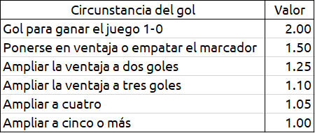 En este caso, el valor más alto lo tiene el haber anotado el único gol del partido, ya que no hay forma de que un gol sea más valioso.